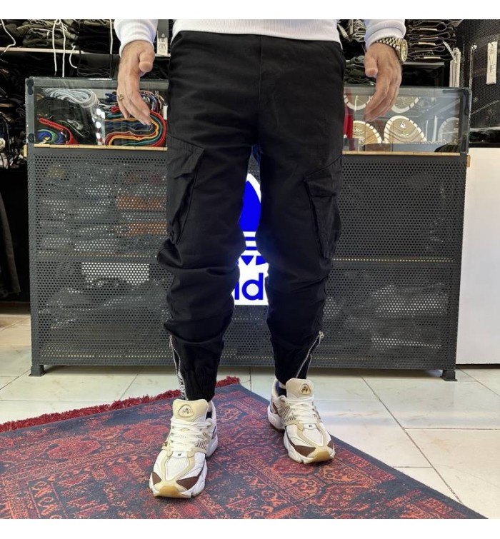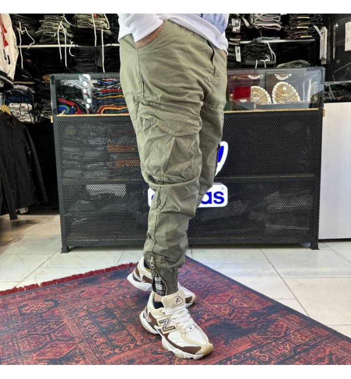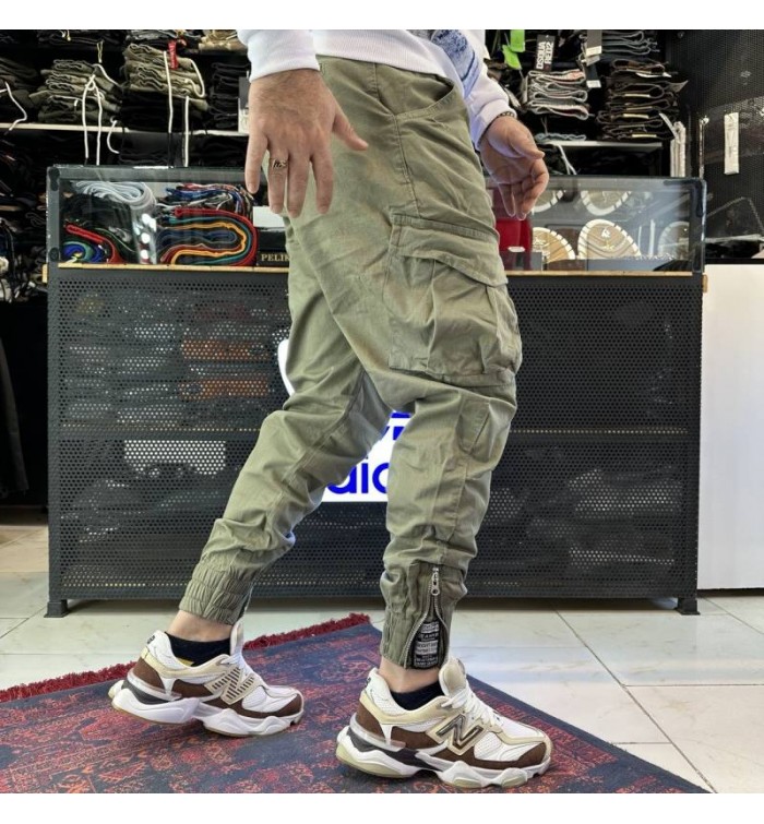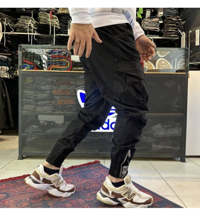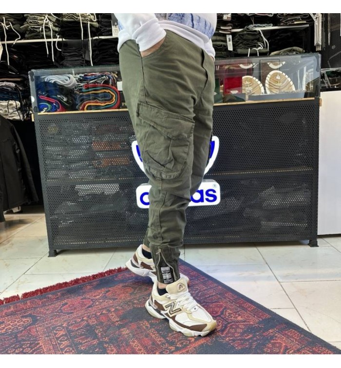 جیب پفی ، دم پا کش و زیپ ، کمر کش ، پارچه دارای کشسانی